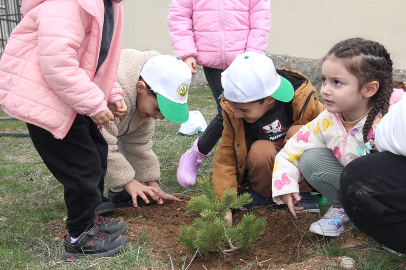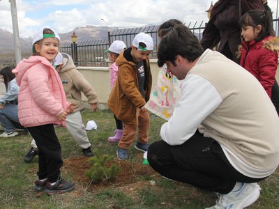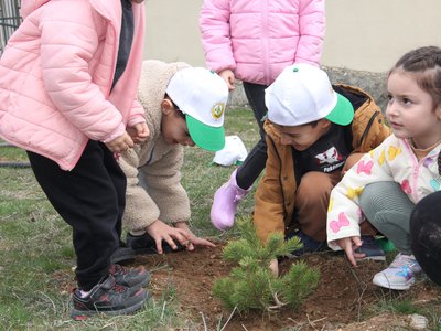 Yüksekokulumuzun sosyal sorumluluk projeleri kapsamında koordine ettiği fidan dikiminde, üniversite öğrencilerimiz ile Ülker ve Kemalettin Başar Anaokulu’nun minik öğrencileri bir araya geldi. Gelecek nesillere daha yaşanabilir bir çevre bırakma bilinciyle hareket eden öğrenciler, sarı çam fidanlarını büyük bir özenle toprakla buluşturarak can sularını verdiler.