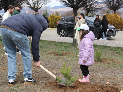 Gümüşhane Üniversitesi Kelkit Kampüsü sahasında düzenlenen etkinlikte, doğa bilincini geliştirmek ve yerleşkenin yeşil dokusunu güçlendirmek amacıyla 200 adet sarı çam fidanı dikildi.