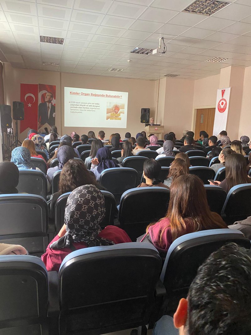 Seminer, öğrenciler ve akademik personelin katılımı ile okulun konferans salonunda düzenlendi. Etkinlikte, Kelkit Devlet Hastanesi’nden Organ Bağışı Koordinatörü Gamze Nur GÜLAP organ bağışının hayat kurtarmadaki kritik rolünü vurgularken, bağışçılarla ilgili hukuki, etik ve tıbbi süreçler hakkında bilgi verdi.
